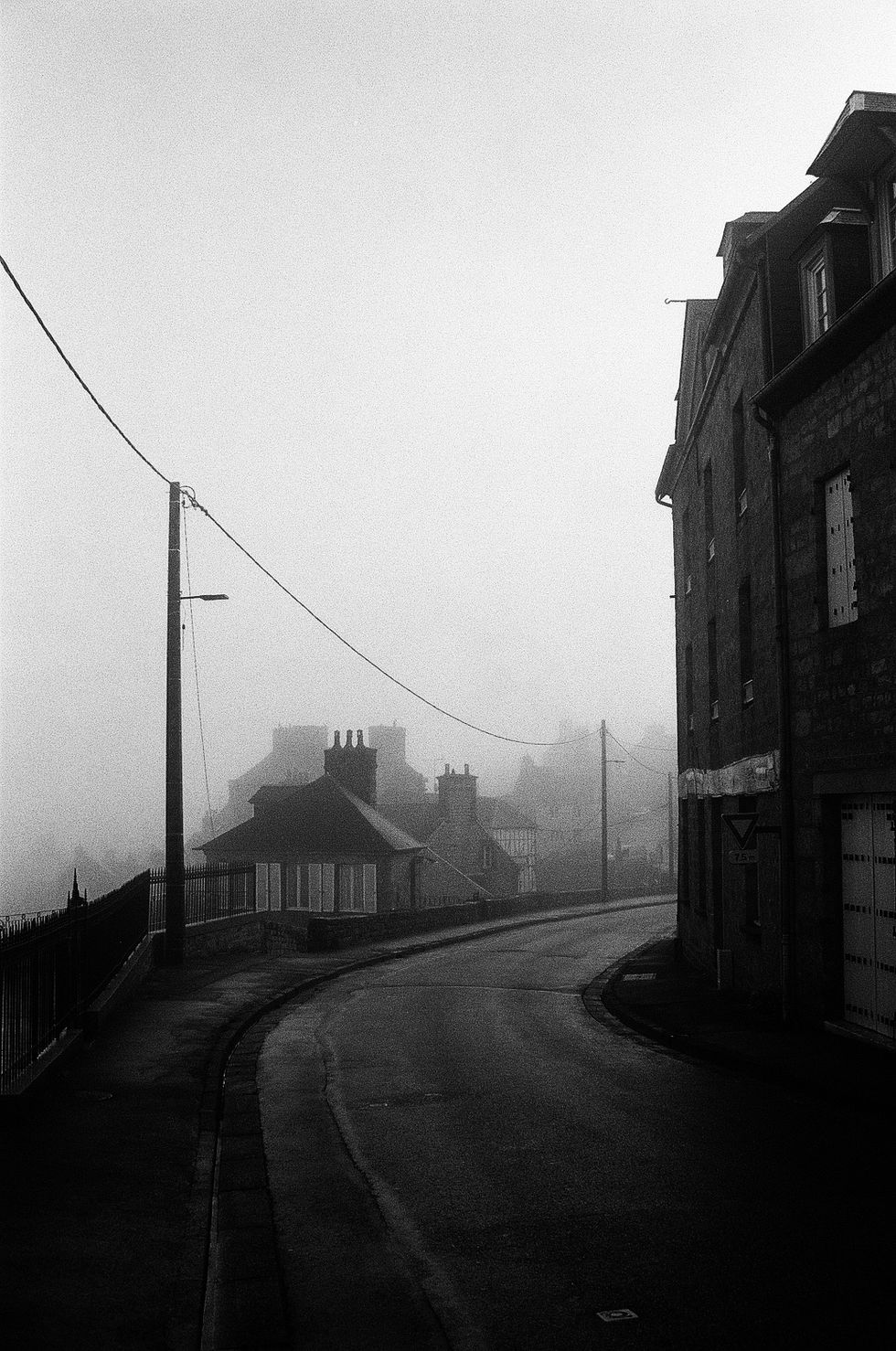 Ici vous retrouvez l'ensemble de mes photographies argentiques prises lors de mon dernier séjour à Domfront-en-Poiraie. Ce village à, le lendemain de noël, attiré mon attention au milieu d'une journée brumeuse : j'ai alors directement pris mon Nikon F50 argentique et visité tous les recoins de la petite ville pour en faire ressortir les meilleures atmosphère de brouillard possible. Ce que j'aime avec la photographie argentique et en particulier en noir et blanc, c'est de recréer des atmosphères imaginaires dans la réalité, en jouant avec les lumières et le cadre.